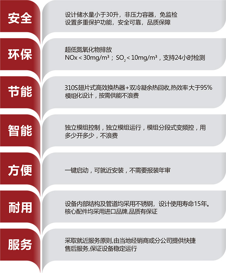6、綠色環(huán)保,使用清潔天然氣或液化氣作為主要能源,排放遠低于國家規(guī)定排放標準,有益于環(huán)境保護。