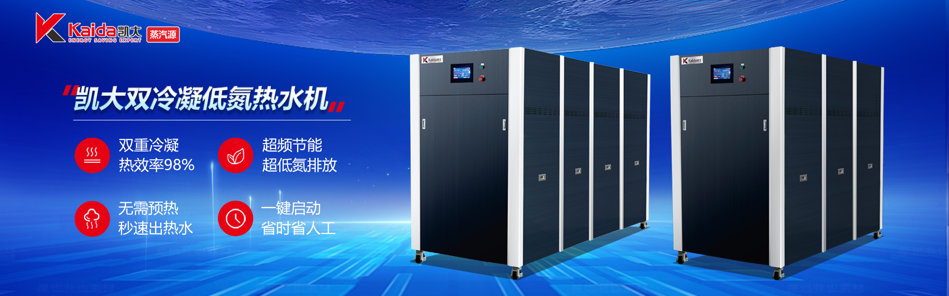 1.冷機啟動5秒出熱水,不用預熱;雙重冷凝技術,熱效率高達98%。